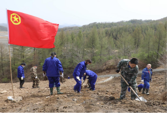 图丨中色股份所属某海外青年突击队员在现场组织冬季运输的卸货工作图丨中色红透山团员青年在开展义务植树活动中平整场地